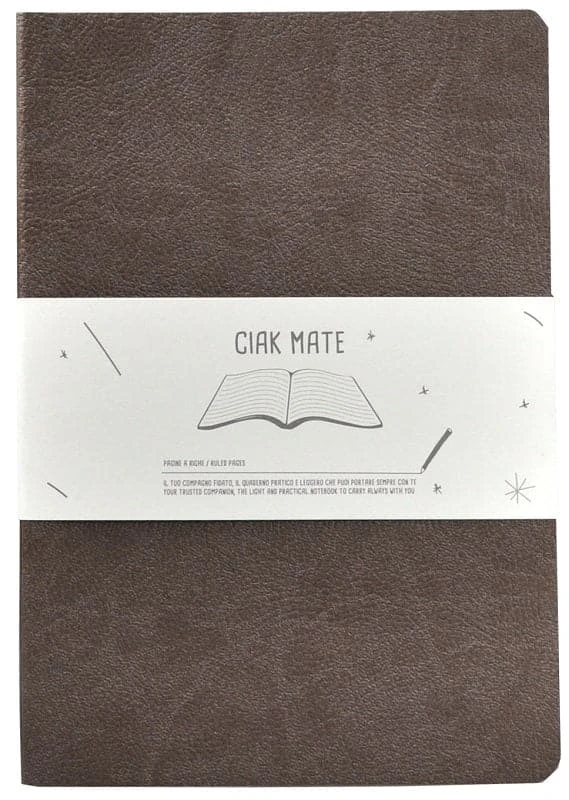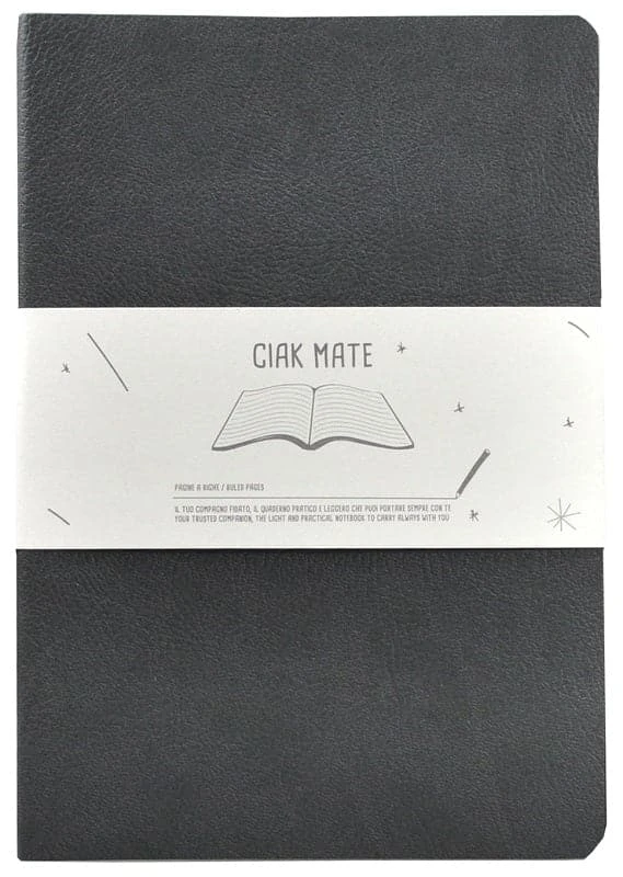 Ciak is proud to present Ciak Mate, a new collection of beautiful notebooks. These softbound notebooks contain 128 lined pages printed on cream-coloured paper and feature a sumptuous, flexible cover made from soft vegan leather, which is available in 7 colours. Ciak Mate notebooks are available in Medium and A4 sizes. Made in Italy.