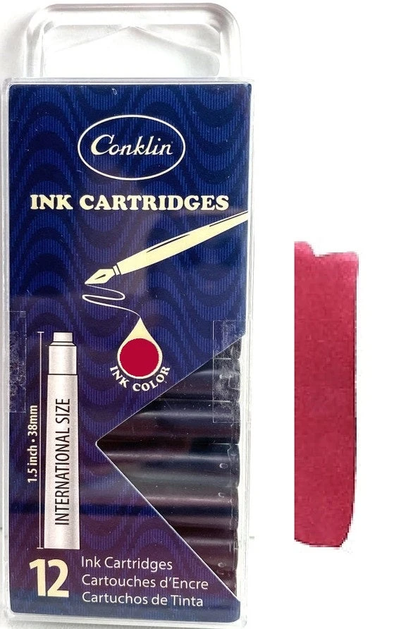 Conklin Fountain Pen Ink Cartridges, 12 Pack, Burgundy