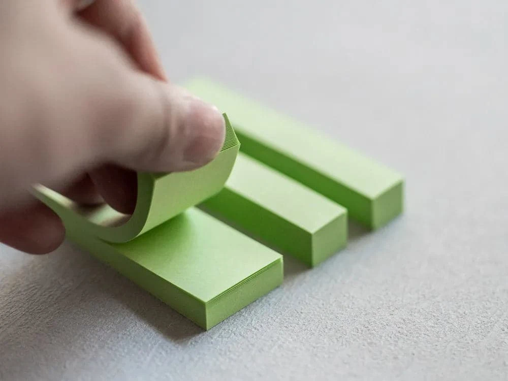 - Small Sticky notes size: 75mm x 12.5mm