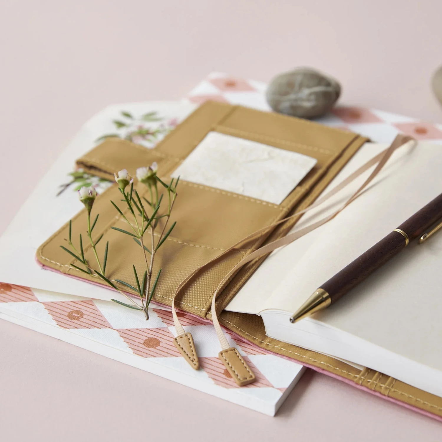 The Hobonichi Techo cover comes with lots of pockets both on the inside and outside. There are various shapes and sizes, from those in which you can store small cards to those that can fit larger postcards. - Two bookmarks