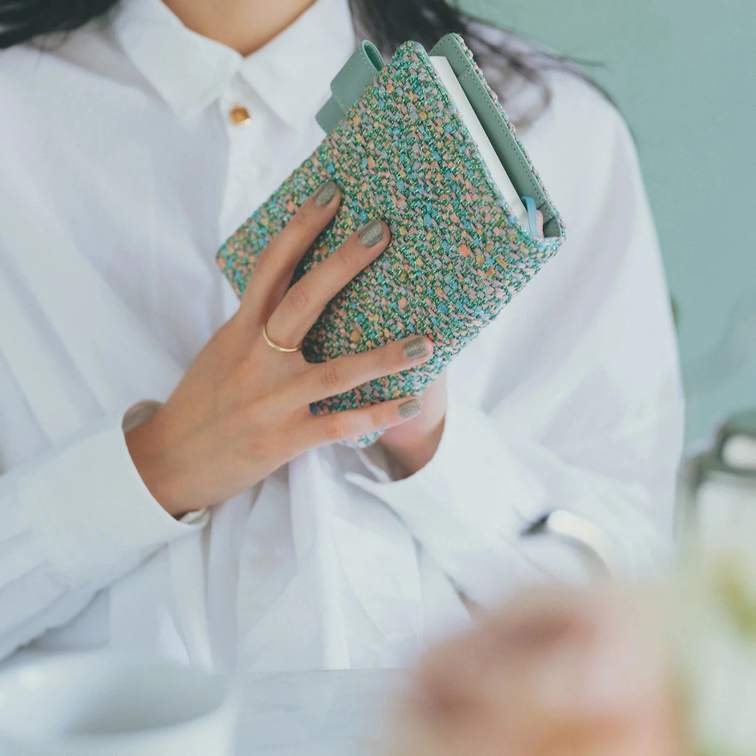 The logo is foil-pressed on the inner pocket in gold. This tweed techo cover using colourful threads luxuriously shows a variety of expressions. It would make your techo even more essential.