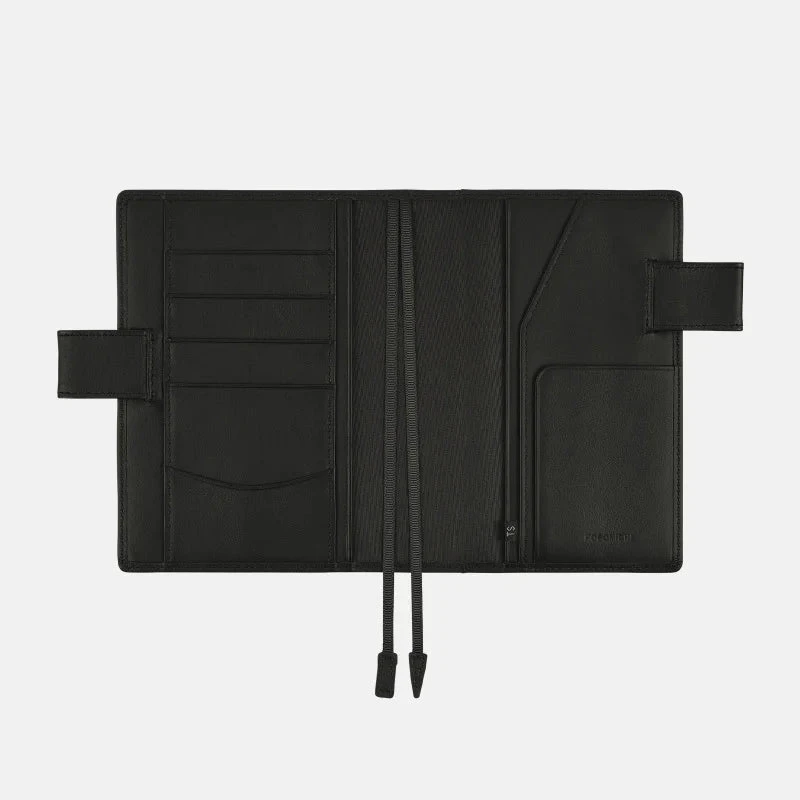 The Zipper cover includes an external pocket on the reverse of the cover, which can hold loose sheets of paper or bank notes. The cover also features a butterfly pen holder, or loop.![Hobonichi 2024 A6 Planner Cover [Leather: Taku Satoh Basic Black] 16 Hobonichi 2024 A6 Planner Cover [Leather: Taku Satoh Basic Black] -Stationery Sale Shop en spec 101](https://cdn.shopify.com/s/files/1/0589/6880/1464/files/en_spec_101-2_1_480x480.png?v=1694121327)