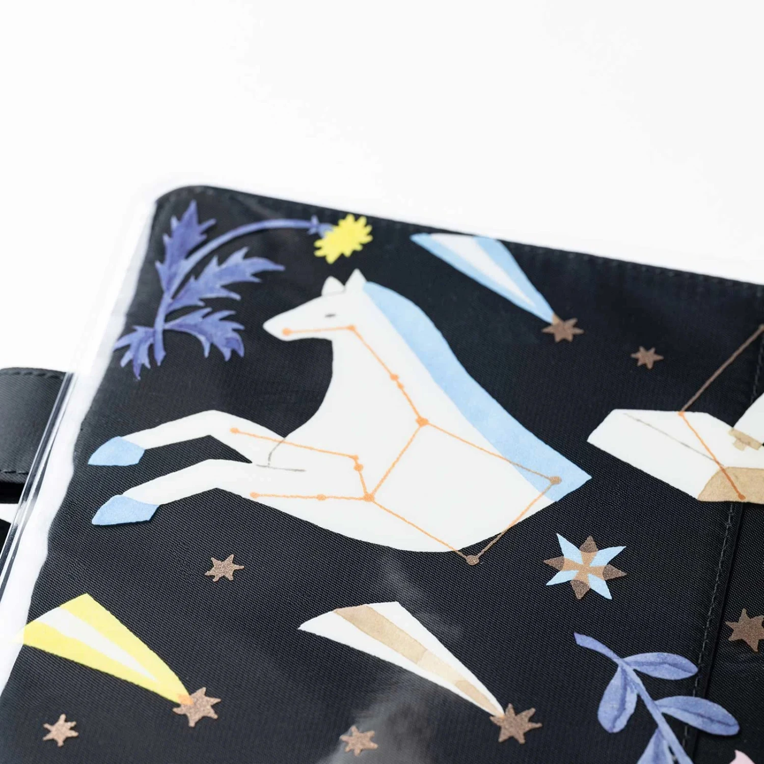 This is the decorated version of the Cover on Cover, an optional, extra covering that fits select Hobonichi Techo covers (for A5 and A6 size) to protect them from wear and tear while instantly giving solid-colour covers a fresh new look (not for use directly on book).