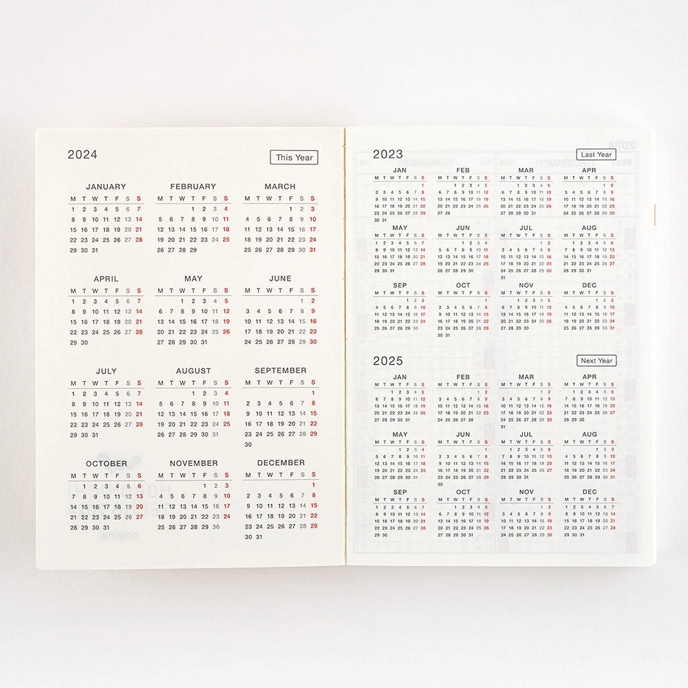 Other than the daily pages with lots of space to write, the book contains several sections that are great for schedule management, such as a yearly calendar, monthly calendar, and yearly index page. The back of the book has bonus pages that were chosen for the English edition book such as Words to Remember, 365 Days Check-Off Sheet, Looking Back at the Year 2024 and Getting the Most Out of Your Hobonichi Techo, as well as those included in the Japanese edition books. In anticipation of the English edition being used in various countries around the world, the calendars do not list holidays.