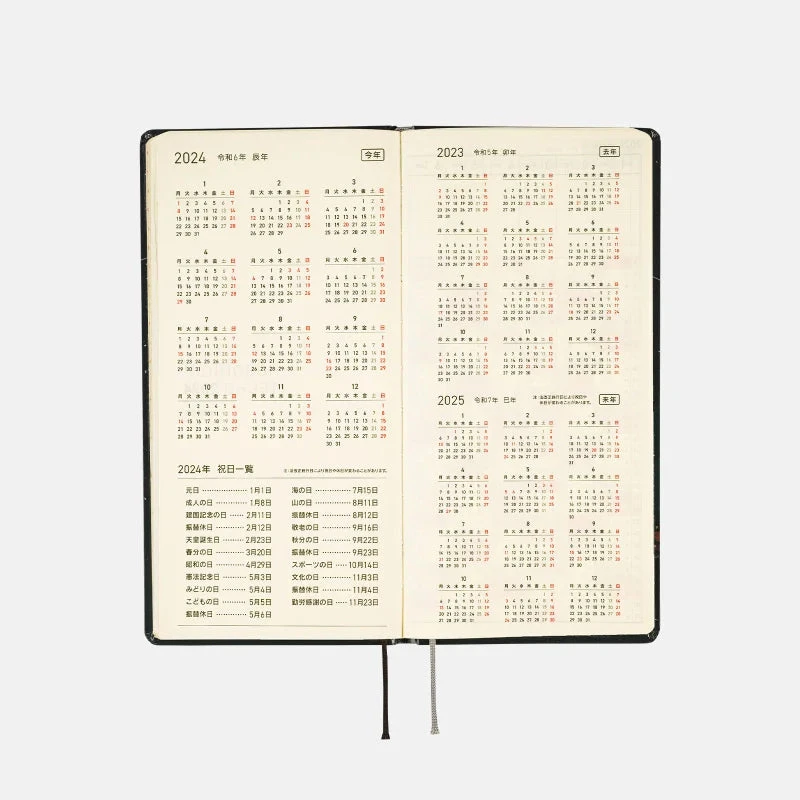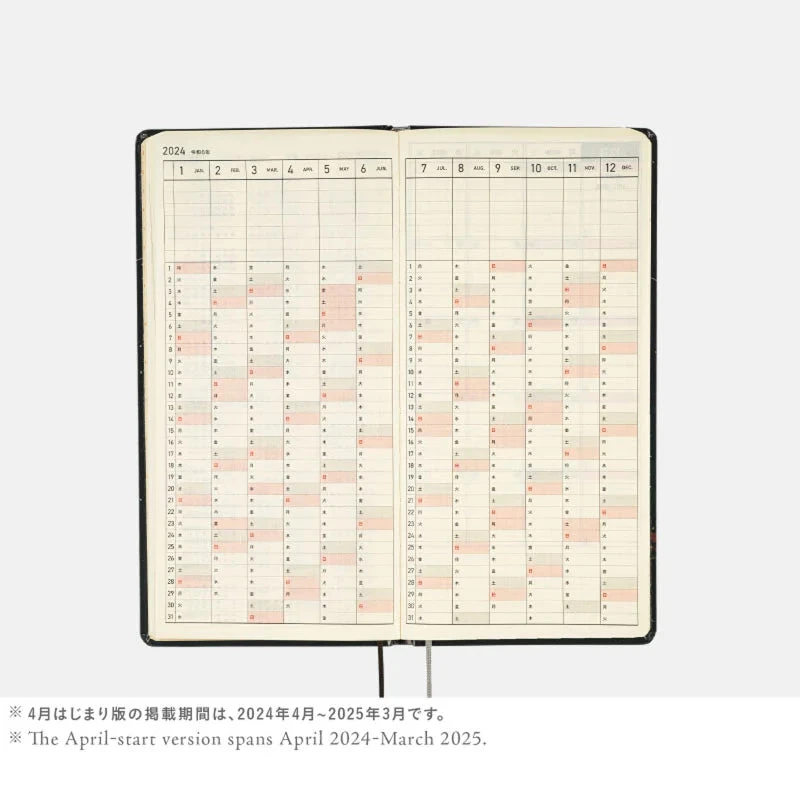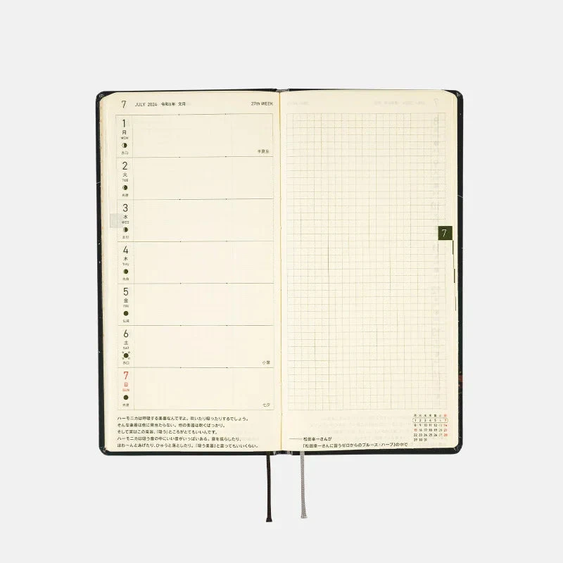 Language Japanese Pages 240 pages Paper Type / Binding Thin, light Tomoe River S paper resistant to bleeding and designed for planners / Stitch-binding Graph Paper Size 3.55 mm Start of Week Monday-start week Yearly Calendar 2023, 2024, 2025 Yearly Index Apr. 2024 – Mar. 2025 (2 pages) Monthly Calendar Mar. 2024 – Apr. 2025 (28 pages) Daily Quotes One per week (Japanese) Weekly Pages Feb. 26, 2024 – Apr. 6, 2025 (116 pages)