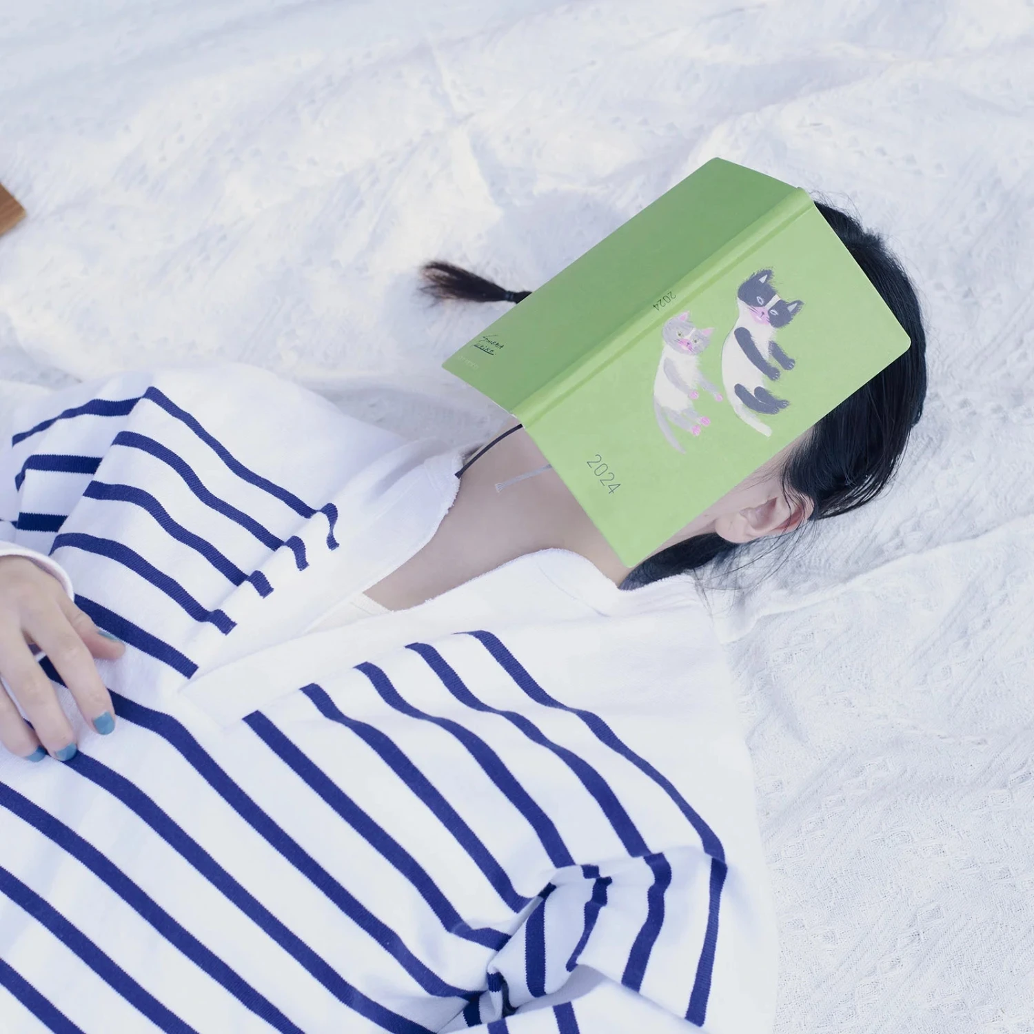 The front cover and book spine are foil-printed with the year 2024 in black, for a nice and simple look.