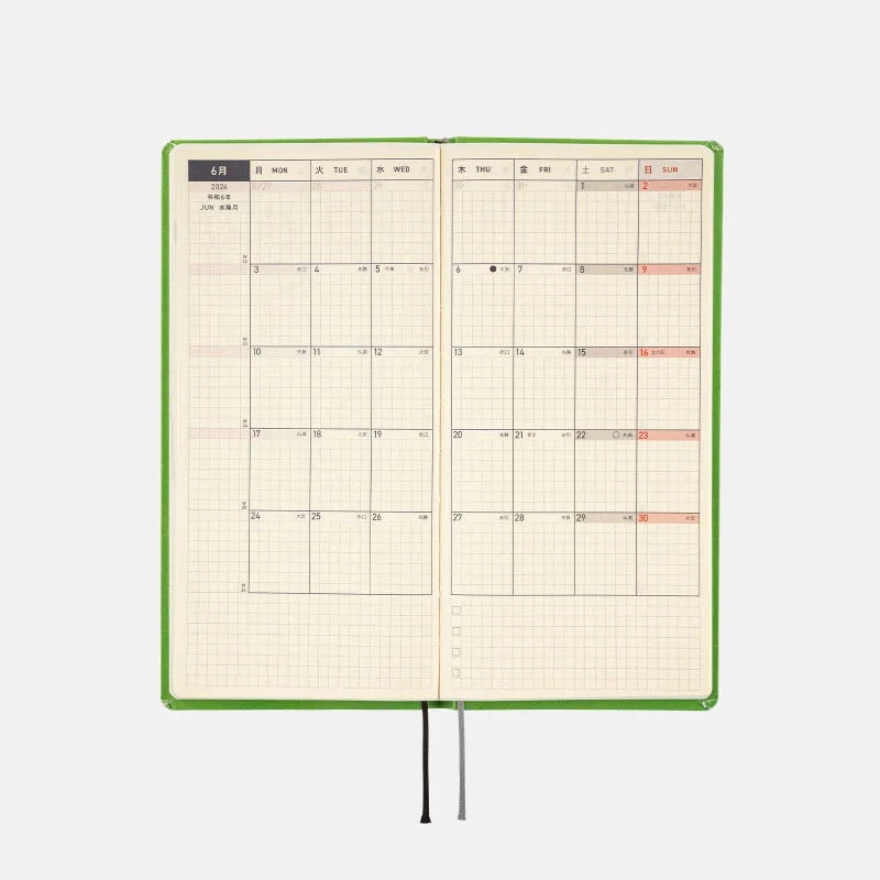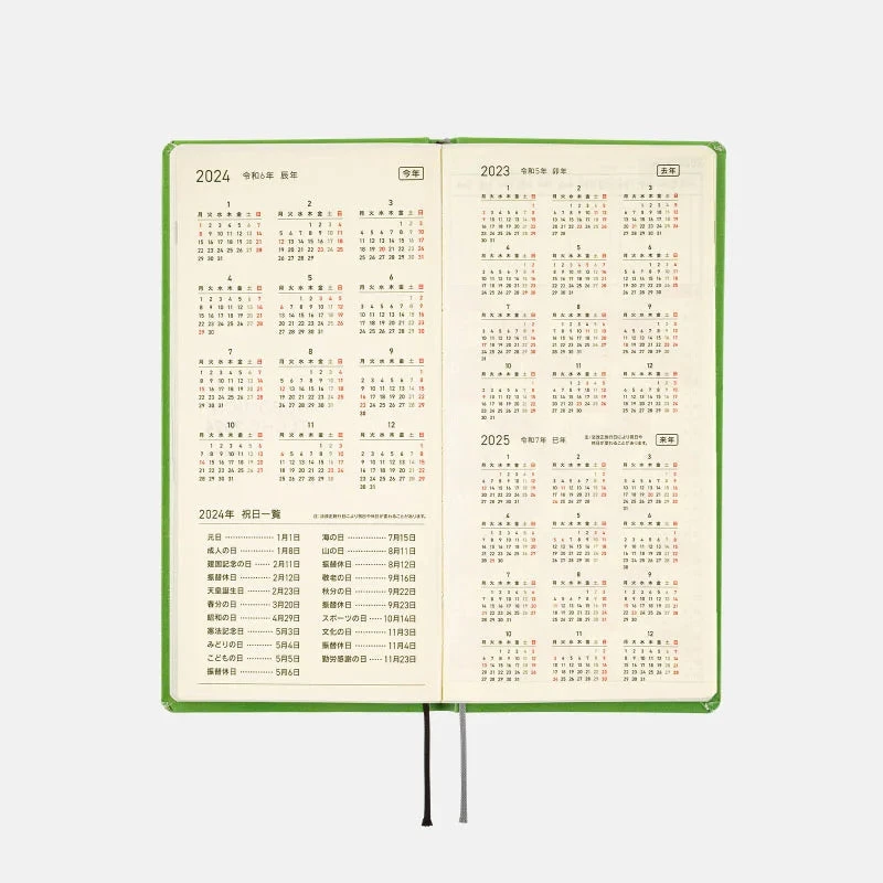 Language Japanese Pages 240 pages Paper Type / Binding Thin, light Tomoe River S paper resistant to bleeding and designed for planners / Stitch-binding Graph Paper Size 3.55 mm Start of Week Monday-start week Yearly Calendar 2023, 2024, 2025 Yearly Index Apr. 2024 – Mar. 2025 (2 pages) Monthly Calendar Mar. 2024 – Apr. 2025 (28 pages) Daily Quotes One per week (Japanese) Weekly Pages Feb. 26, 2024 – Apr. 6, 2025 (116 pages)