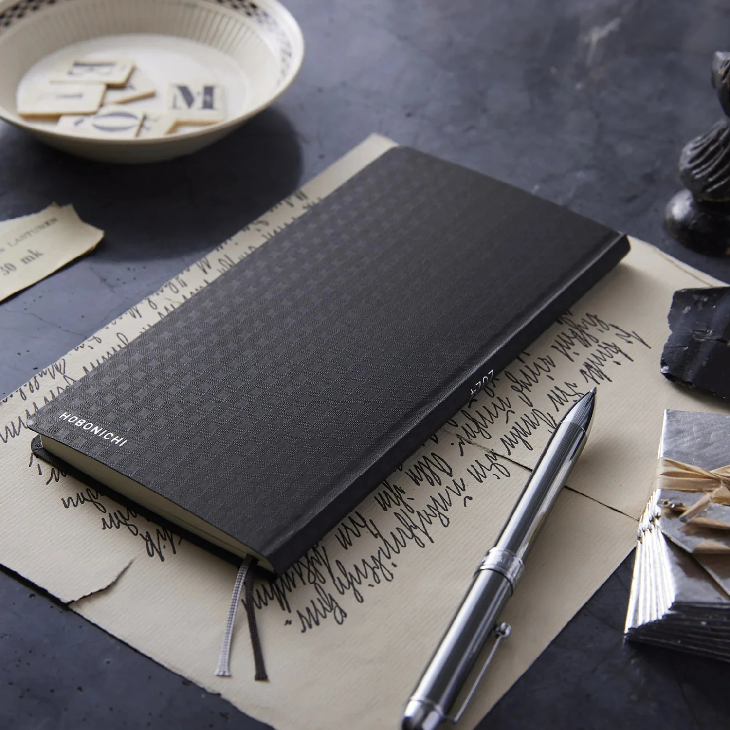 - The endpaper is designed with the letters from Hobonichi’s logo — shortened to HOBO — arranged in a chic design