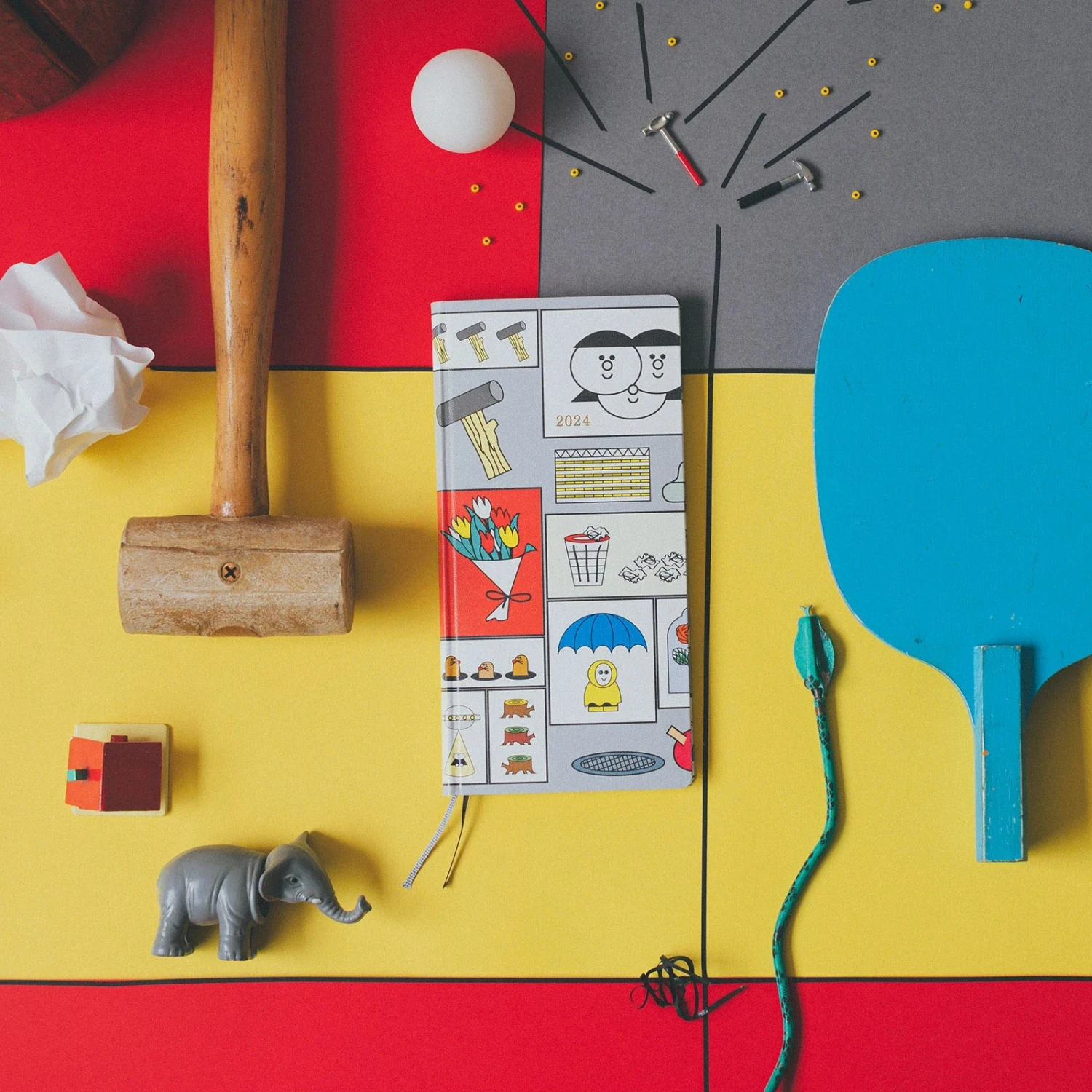 Introducing the Hobonichi Weeks book with the artwork of graphic designer Tomomi ©︎ Nishikawa. Tomomi ©︎ Nishikawa’s work, created by combining different shapes, are all free and entertaining designs that look like bouncing balls.