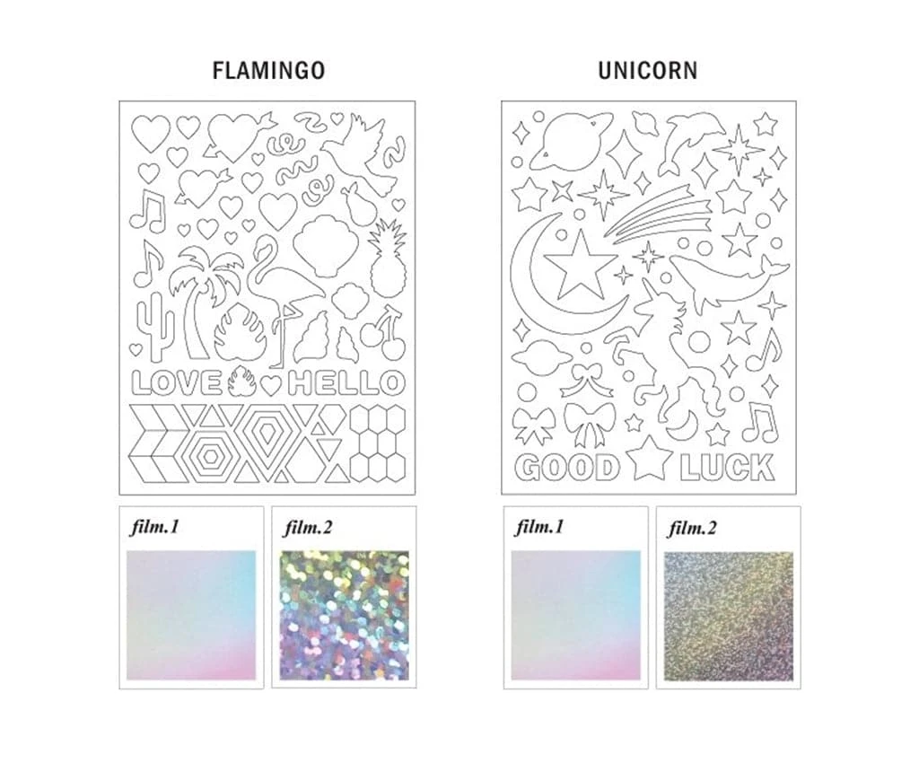 The cute Hologram Deco Pack by Iconic is perfect to decorate your favourite items and personalise notebooks/diaries/planners. Each pack contains 2 sheets in two different colours (see images). Measures 160 x 120 mm. Made in South Korea.
