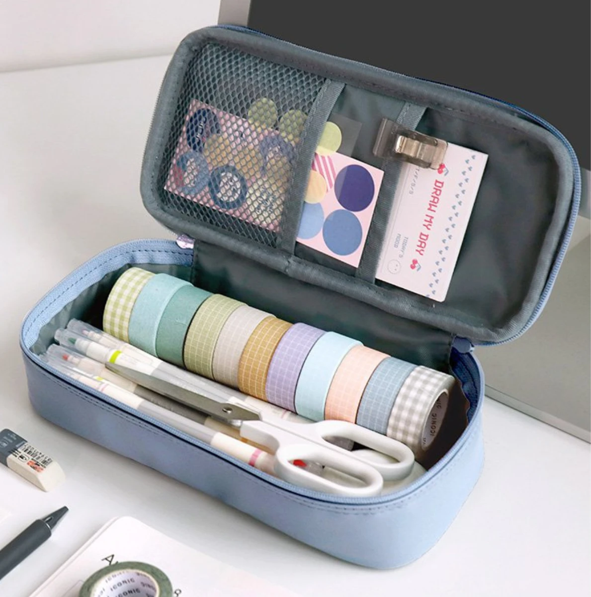 Inside the pen case you have three compartments to stay organised, and you can also count on an external transparent pocket that you can customise with pictures or stickers.Â