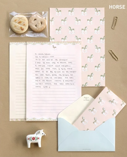 - Patterned letter writing set.