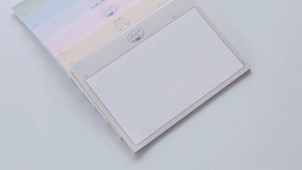 A wide 4mm grid notepad from whimsical brand, Iconic. Each notepad has 50 easy to tear sheets, available in 6 soft pastel shades. Every notepad has a different character at the top of each page, coordinated with the colour of the pad.Â