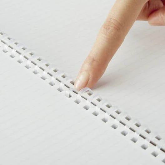 This B5-sized Kokuyo Soft Ring Natural notebook has a soft cover in a variety of colours. You can use the notebook comfortably even if you don’t have a sturdy table to rely on. Take this notebook with you on transport journeys, in meetings, or whilst exploring outdoor adventures. You can fold the notebook without worrying about making a bend in the spine. The notebook has a flexible binding of soft plastic rings for its spine.