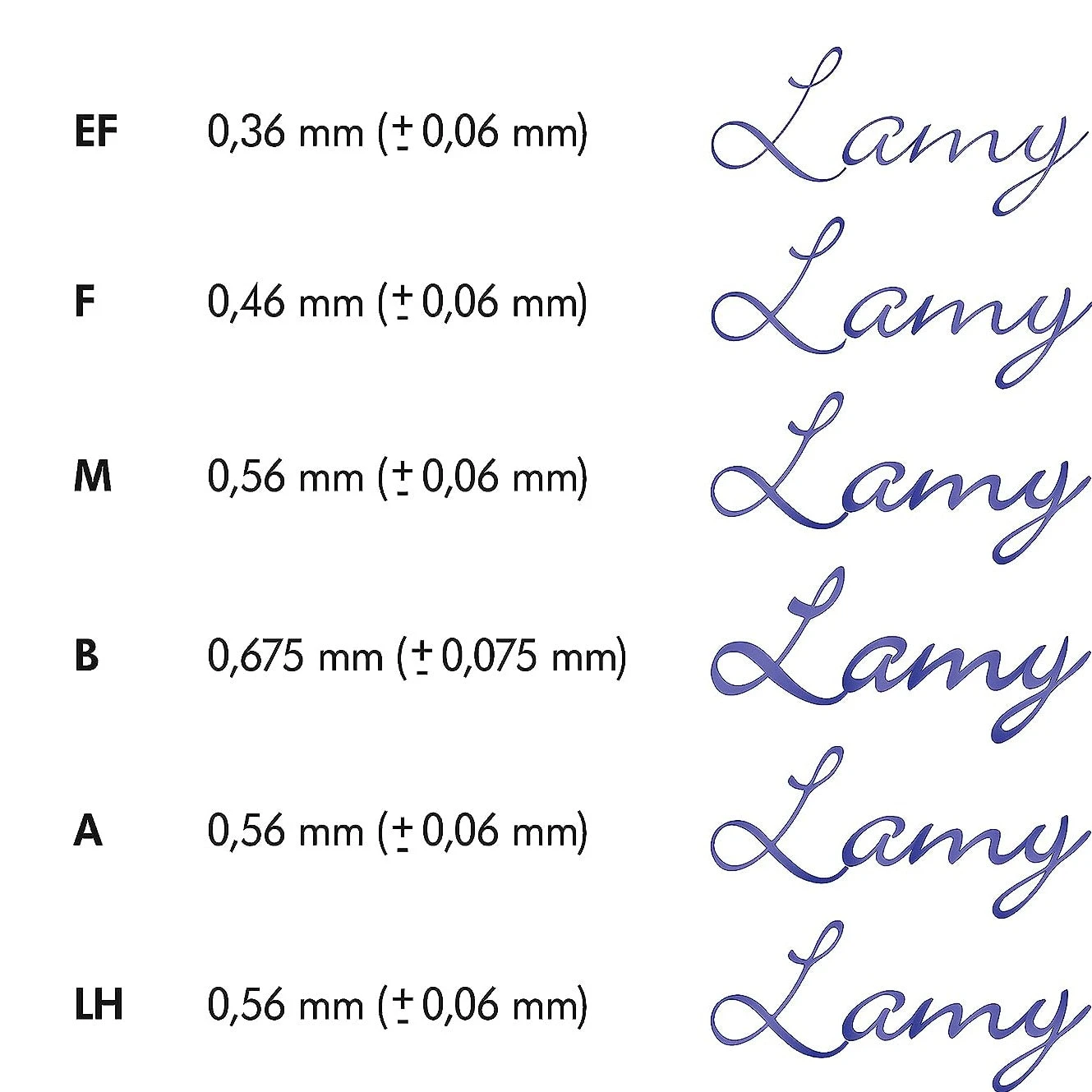 Writers with a straight grip will feel particularly at ease with these nibs: straight nibs are available from Lamy in sizes “extra fine” (EF), “fine” (F), “broad” (B) and “extra broad” (BB).Â
