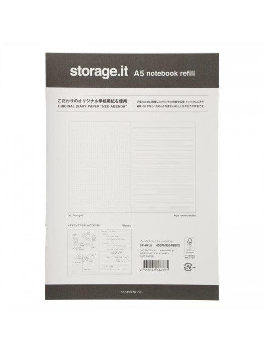 Refill for the Mark’s Tokyo Edge Storage.IT A5 notebook.Â