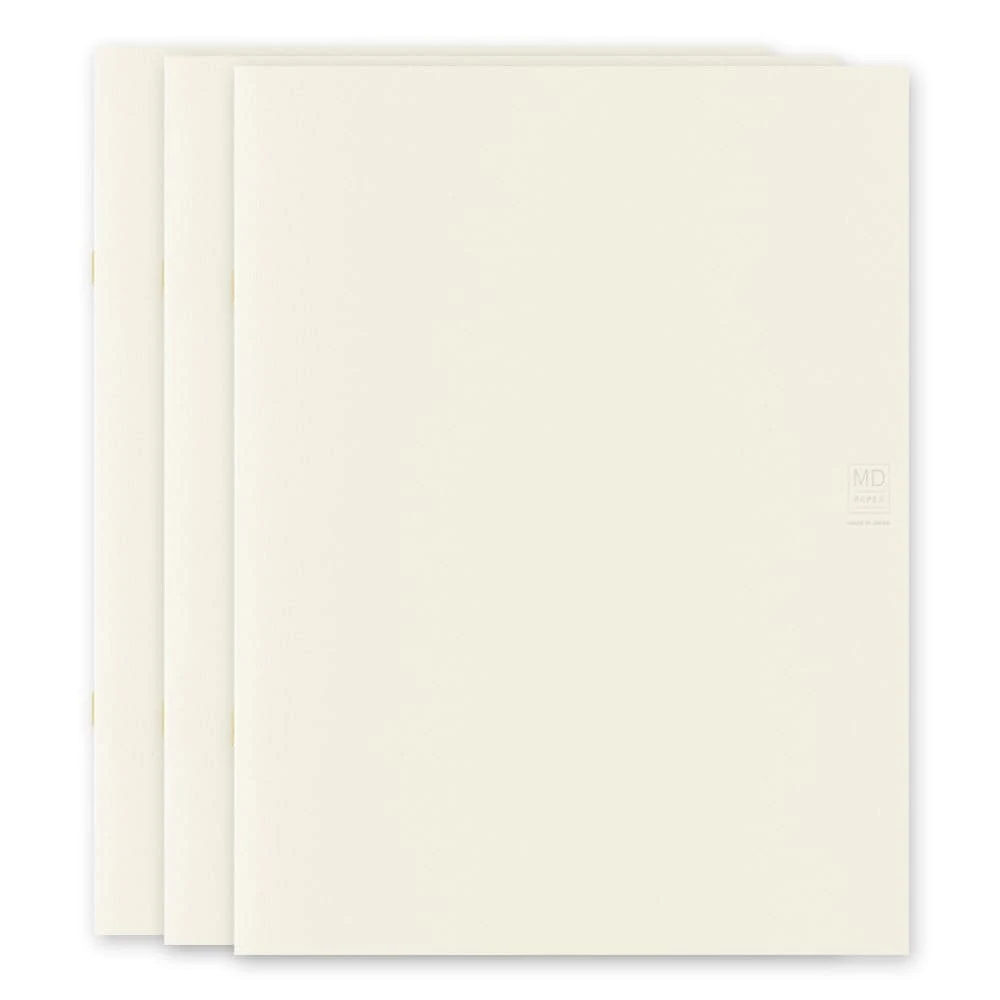 A set of 3 thin, easy to carry MD notebooks in a convenient A4 size featuring a minimalist design. Made in Japan.