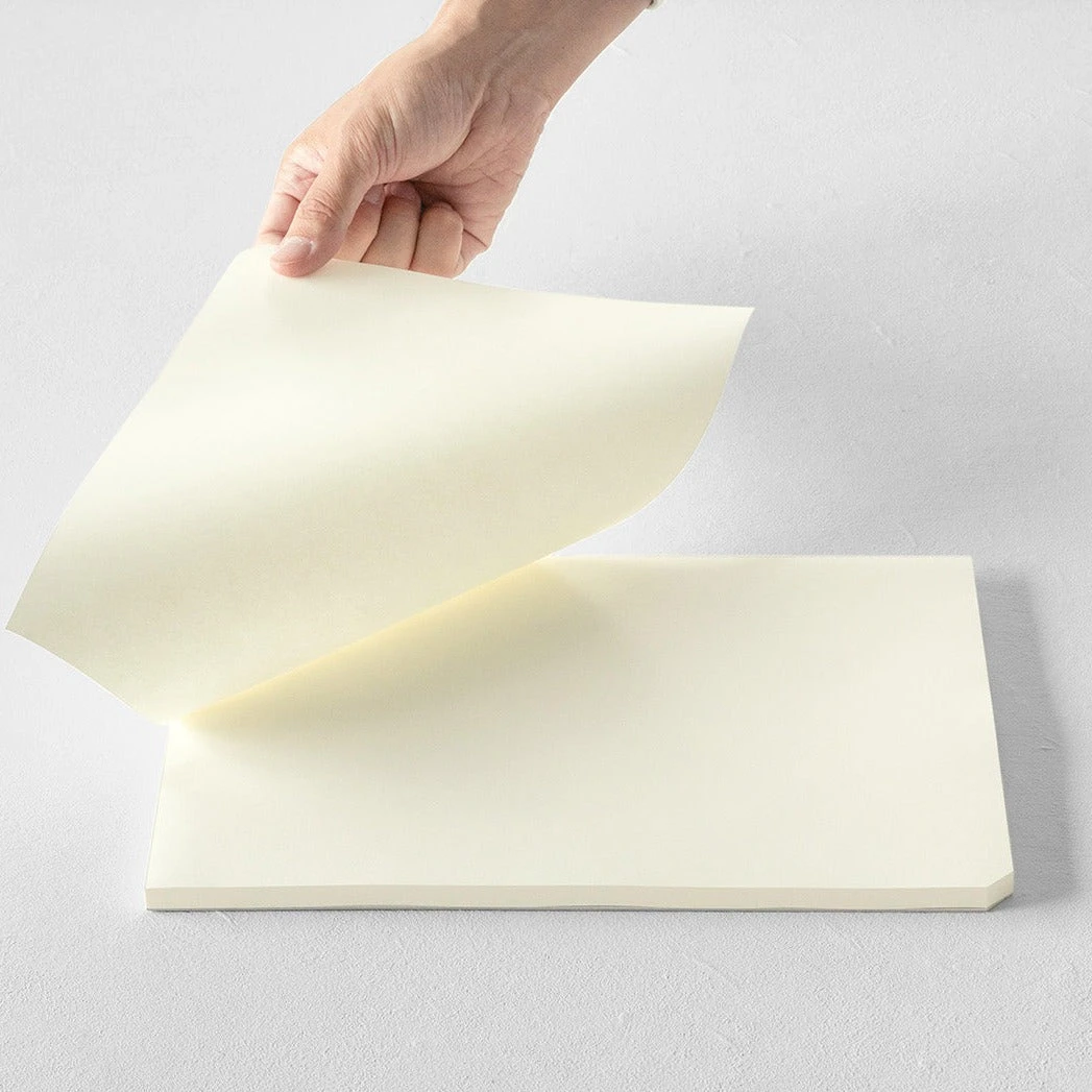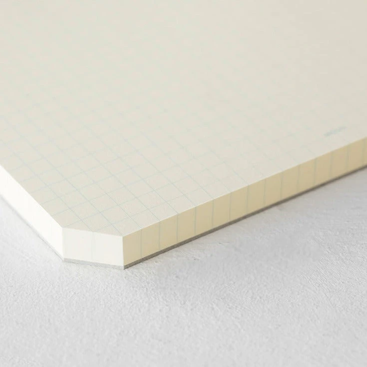Recently reprinted in response to numerous requests from MD fans, the A5 grid MD Paper Pad by Midori is a simple and elegant notepad featuring double-sided paper bound with glue. Its functional design and amazing quality paper make it a real pleasure to write on. One corner is cut to make it easier to turn around.