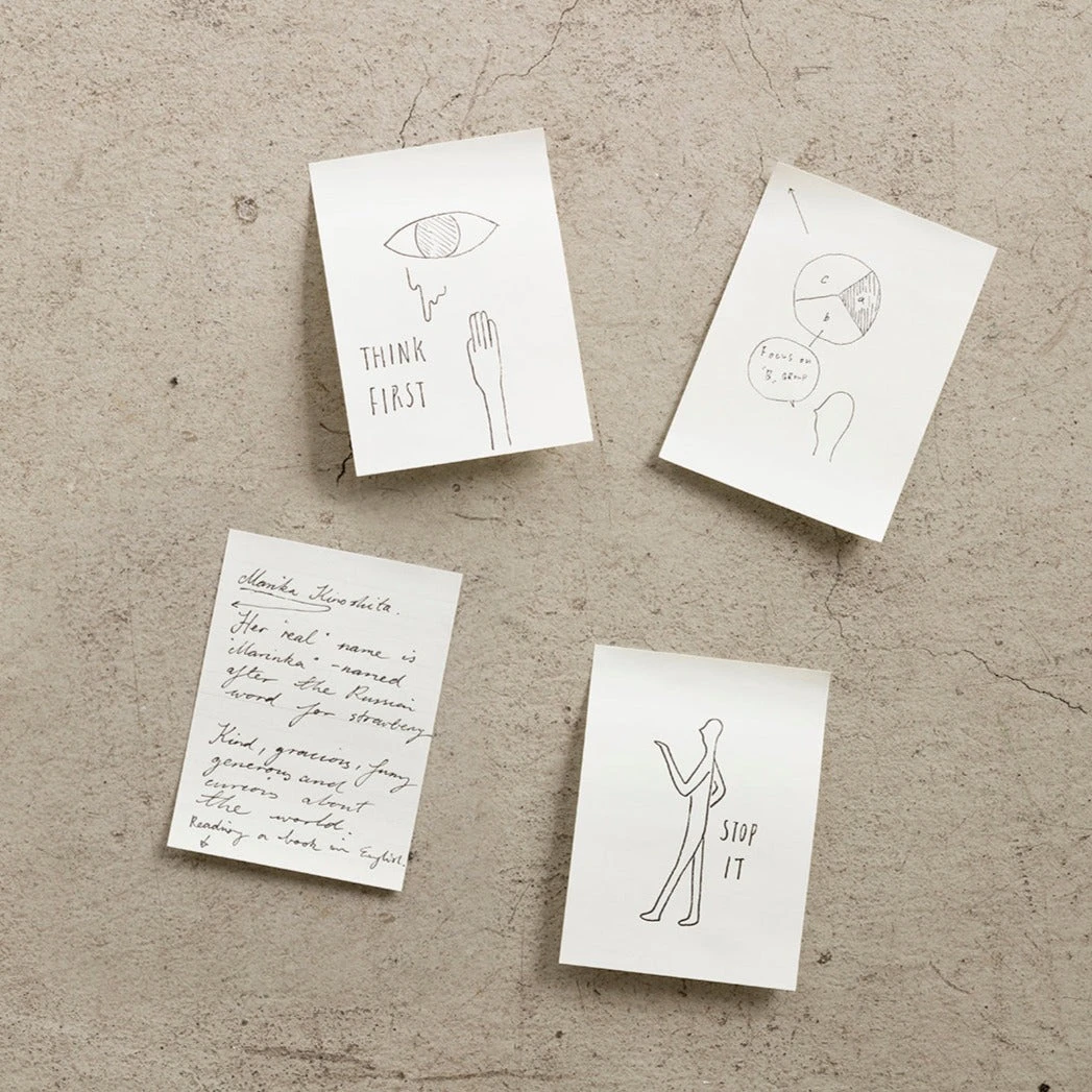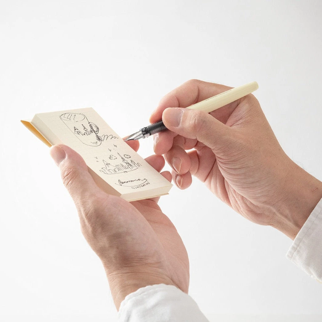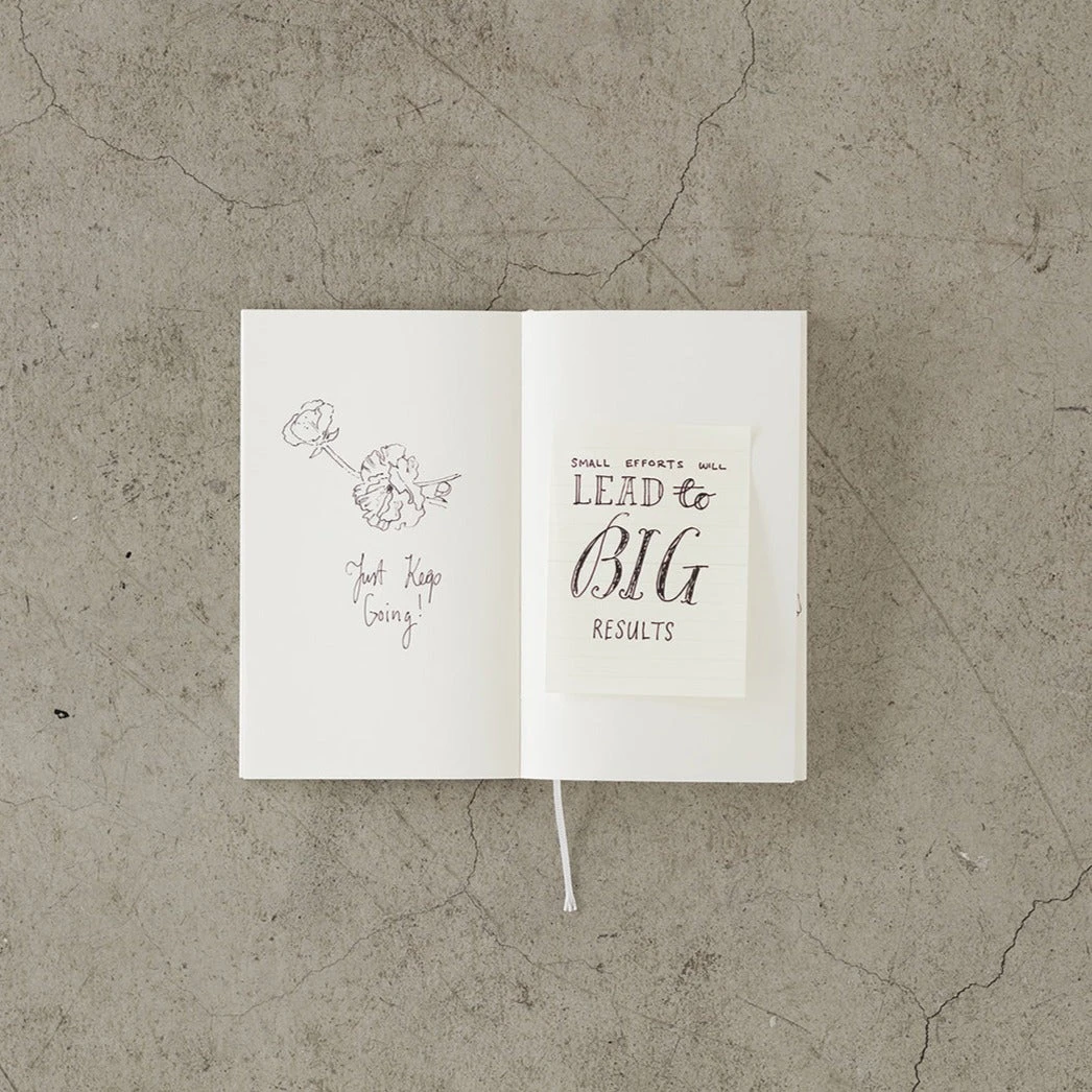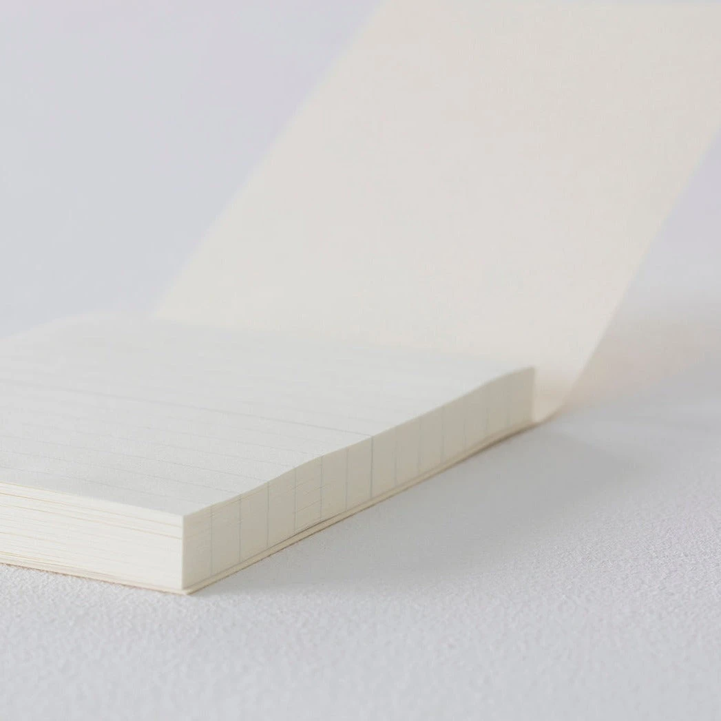 MD Sticky Memo Pad is around 5mm smaller than the pages of the MD Notebook, so that you can add sheets to the MD Notebook. Stick them in and they fit so neatly that they look like part of the page. Expand on what you write in your MD Notebook by adding ideas on sheets from the MD Sticky Memo Pad.