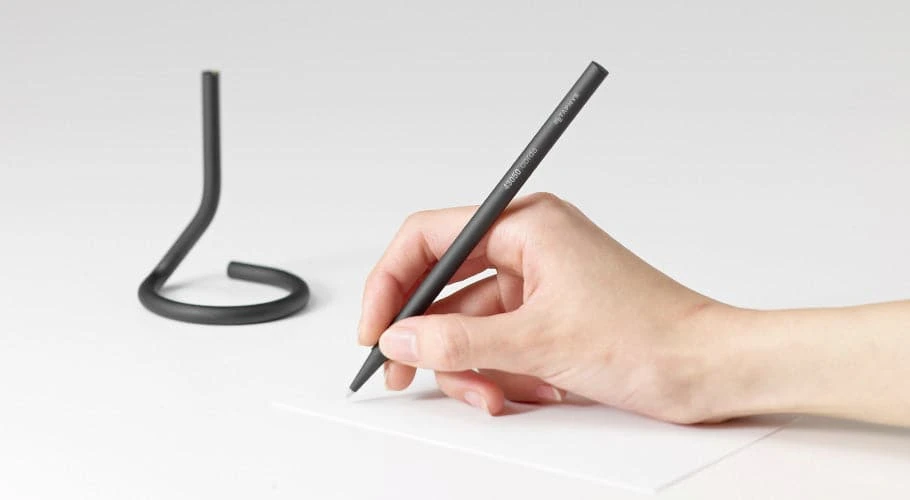 An original pen and pen holder by Metaphys unified in one, continuous shape. Crafted from aluminium and brass, Corda is a light and elegant pen/accessory that will look great on your desk.
