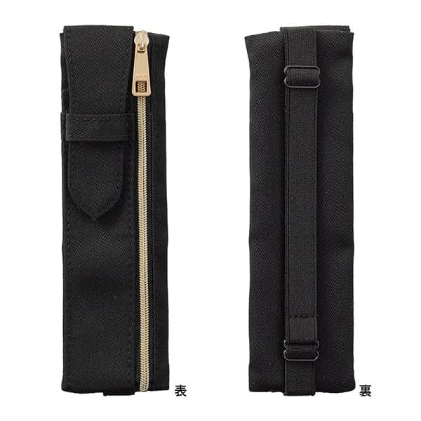 This is a very handy pencase from Midori, which can carry up to four of your favourite pens. With its adjustable elasticated band, the pencase slips onto your notebook (fitting notebook sizes from B6 to A5) cover so you always have a pen with your notebook. This Midori pencil case is made from a mixture of cotton and polyester which has a pleasant feel while still being durable. As well as the main zipper pocket, there is an outside pocket which fits one pen, secured with a flap.