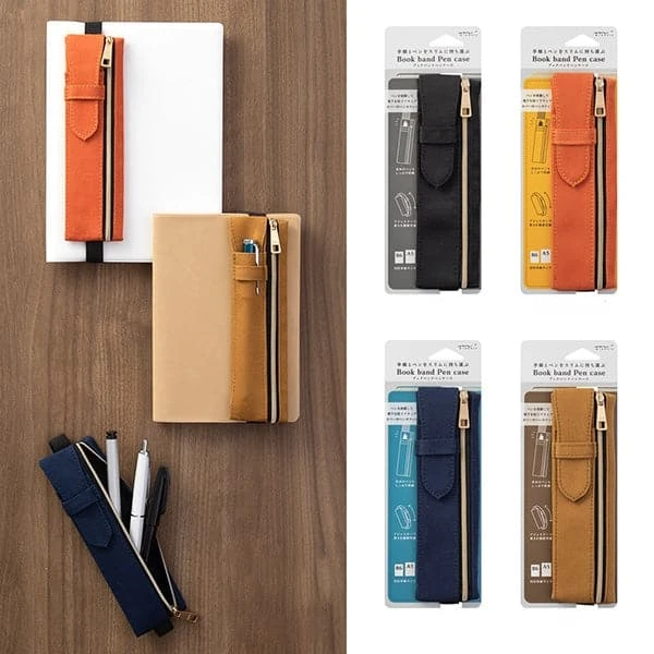 The Midori Book Band Pencase measures H183 x W55 x D20mm. Available in four colours: Black, Orange, Navy and Tea.