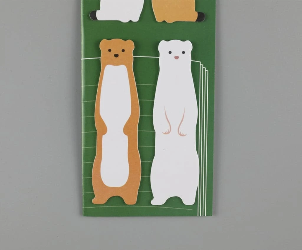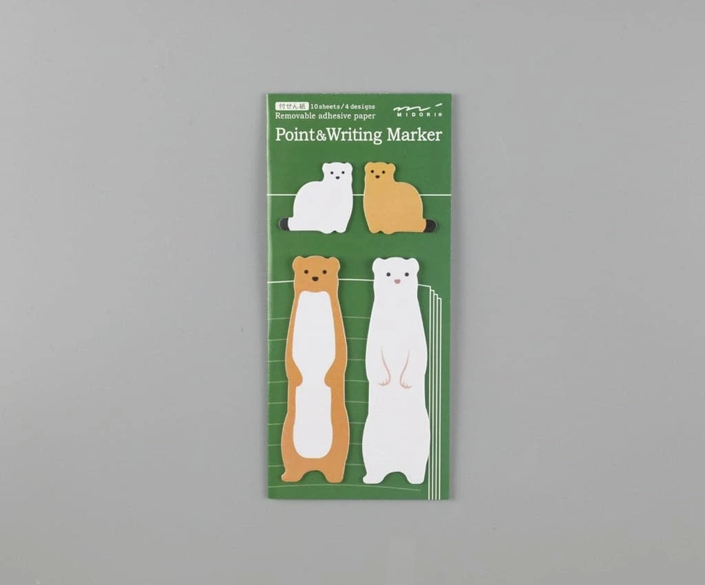 Set of weasel themed sticky labels from Midori. The cute little baby weasels are Point Markers, perfect for marking a point on a page, while the grown up weasels are Writing Markers, ideal for annotating or marking a page.