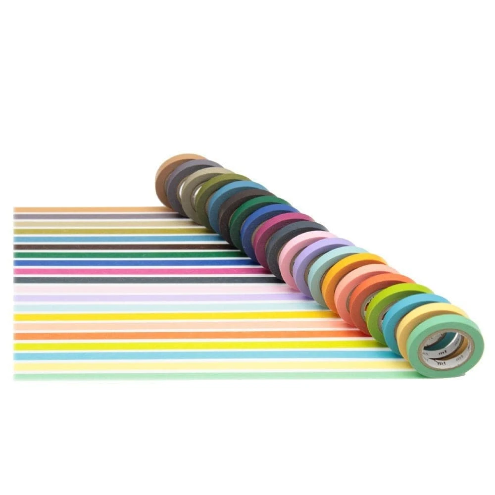 MT Masking Tape pack of 20 coloured rolls, includes light and dark shades, ideal for gifting