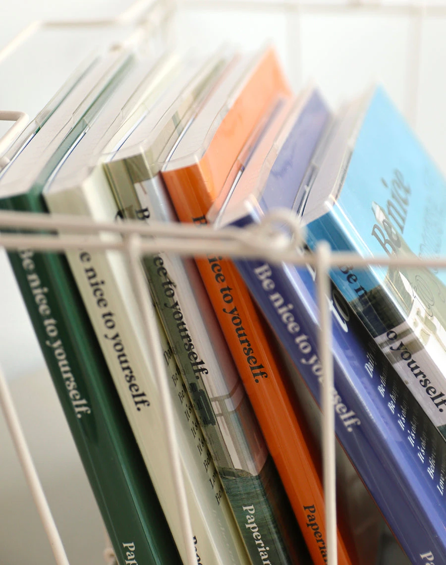 From the innovative minds of Korea’s Paperian, the ‘Be Nice To Yourself’ notebook encourages positivity and self-care. This 160-page notebook comes in six stylish cover designs – Off-White, Green, Mandarin, Velvet Blue, Small Town, and Room With A View, offering an aesthetic appeal that mimics a sleek paperback book.