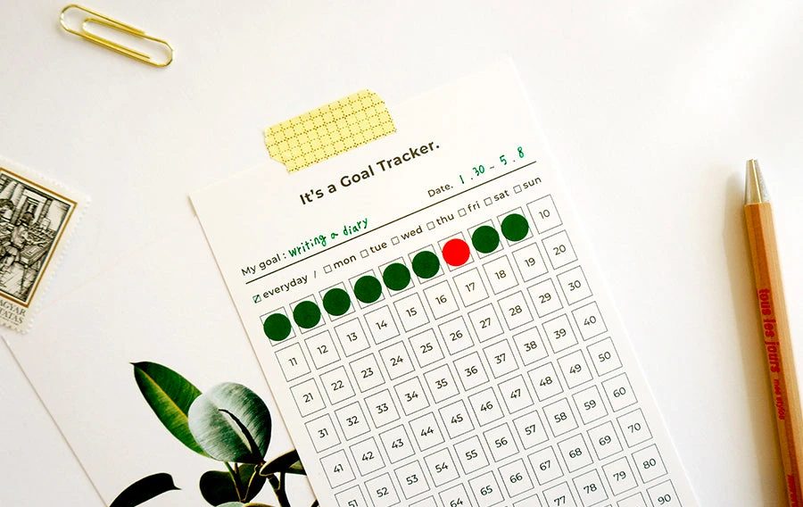 The Goal Tracker measures 100 x 180mm (approximately 3.94″ x 7.09″), making it an ideal size for daily carry. Made of robust 230gsm thick paper, this tracker will withstand regular use without bending or creasing.