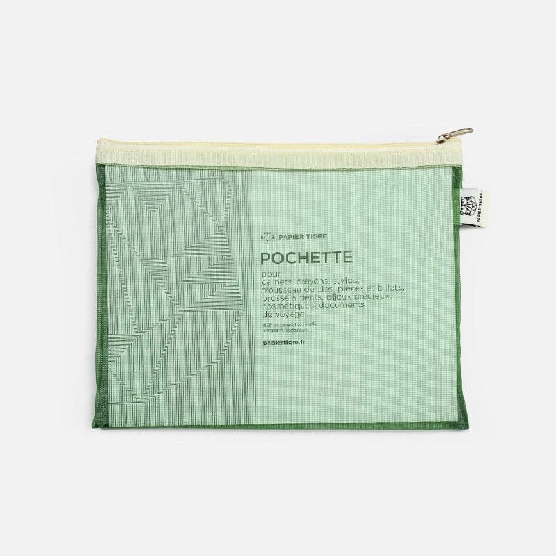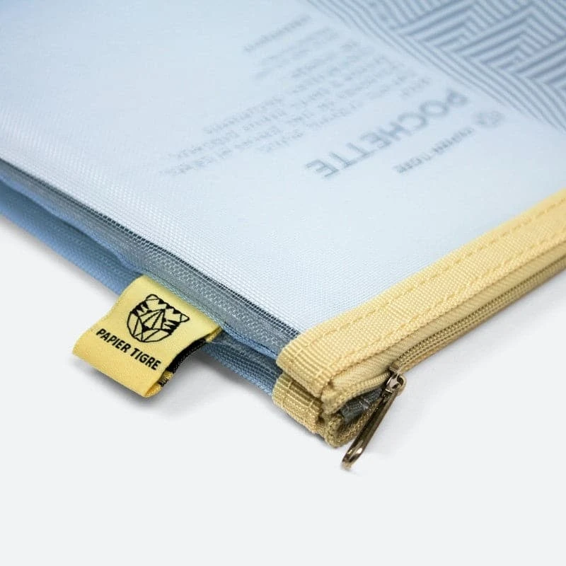 Papier Tigre Mesh Pockets are stylish pouches to keep your notebook, your pens and pencils, your phone, your keys, your change, your toothbrush, your precious jewels, your make up, your travel documents or anything else you choose. They are made from a transparent durable mesh fabric.