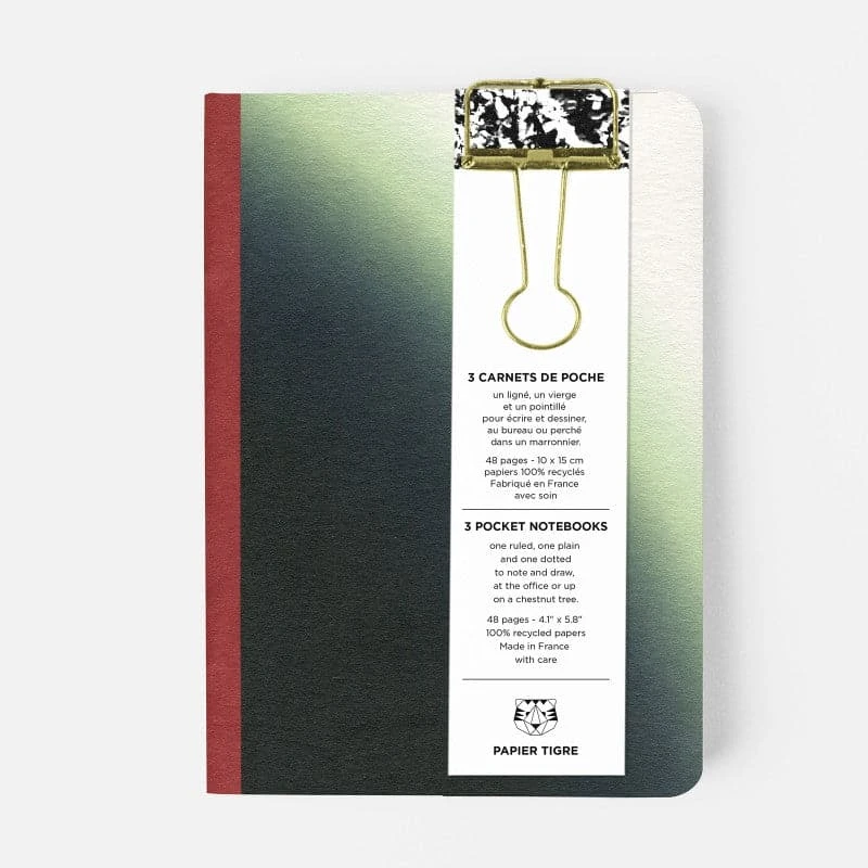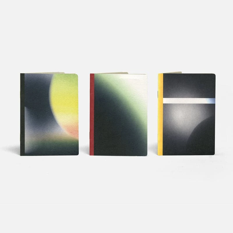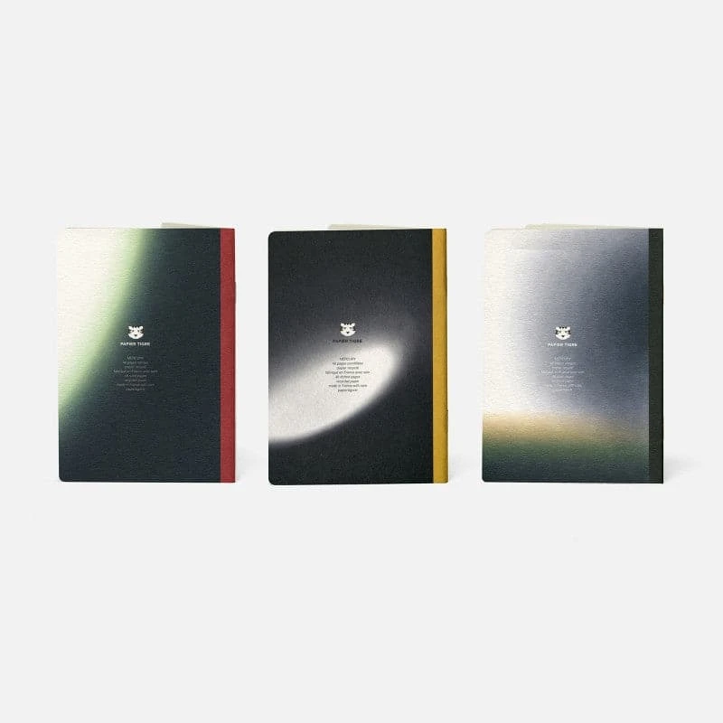 Papier Tigre is celebrating the 50th anniversary of the first step on the Moon with a collection of notebooks dedicated to space. With Lighting effects, suspended forms, shadows, distortion of everyday objects and sci-fi movies, we invite you to explore new territories, new realities. Infinity is now at your fingertips. This set contains 3 pocket notebooks – one ruled, one plain and one dotted – for writing and drawing, at the office or up on a chestnut tree.