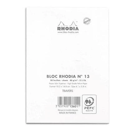 The Classic Rhodia Head Stapled Pad in a pocket format is the perfect pad for sketches and notes on the go. 80 Sheets of Rhodia’s super smooth paper, micro-perforated at the top for easy and clean removal.