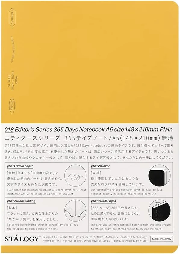 An award winning product, the Stalogy 365 Days Notebook his isn’t your everyday notebook. Sized at 5 7/8″ x 8 1/4″, it’s enclosed within a textured softcover cardstock. Inside, you’ll discover 368 pages of premium 52gsm white paper that, despite its weight, resists bleeding and warmly welcomes a myriad of writing instruments, from fountain pens to ballpoints.
