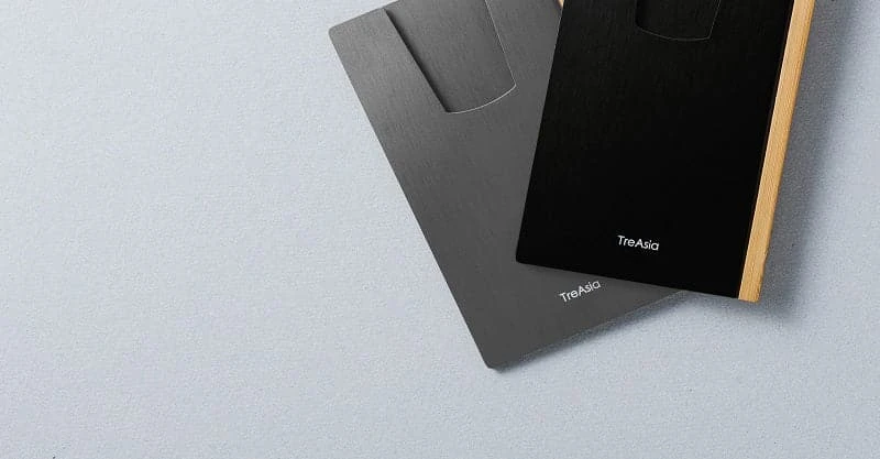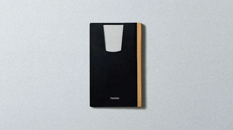 Beautiful card holder by TA+d, crafted from bamboo wood and aluminium.