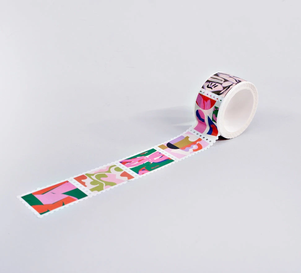 Do The Completist design the coolest washi tapes ever? We think so. This tape comes packed in a cardboard box (plastic free!) Perfect for brightening up your journal or scrapbook. Jazz up your notebooks and letters with this stamp washi tape. And is perforated so each piece can be pulled off, just like real stamps!