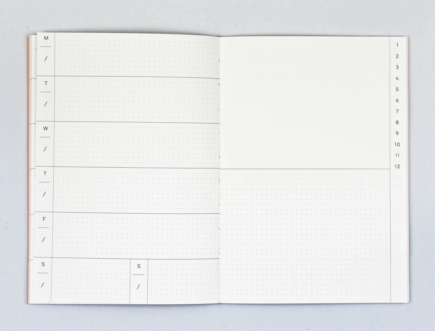 The Completist Weekly Planner is a beautiful journal made in the UK. It is un-dated, so you can start it whenever you want. It’s layout features a 2 page spread per week, and a 2 page spread for each month.