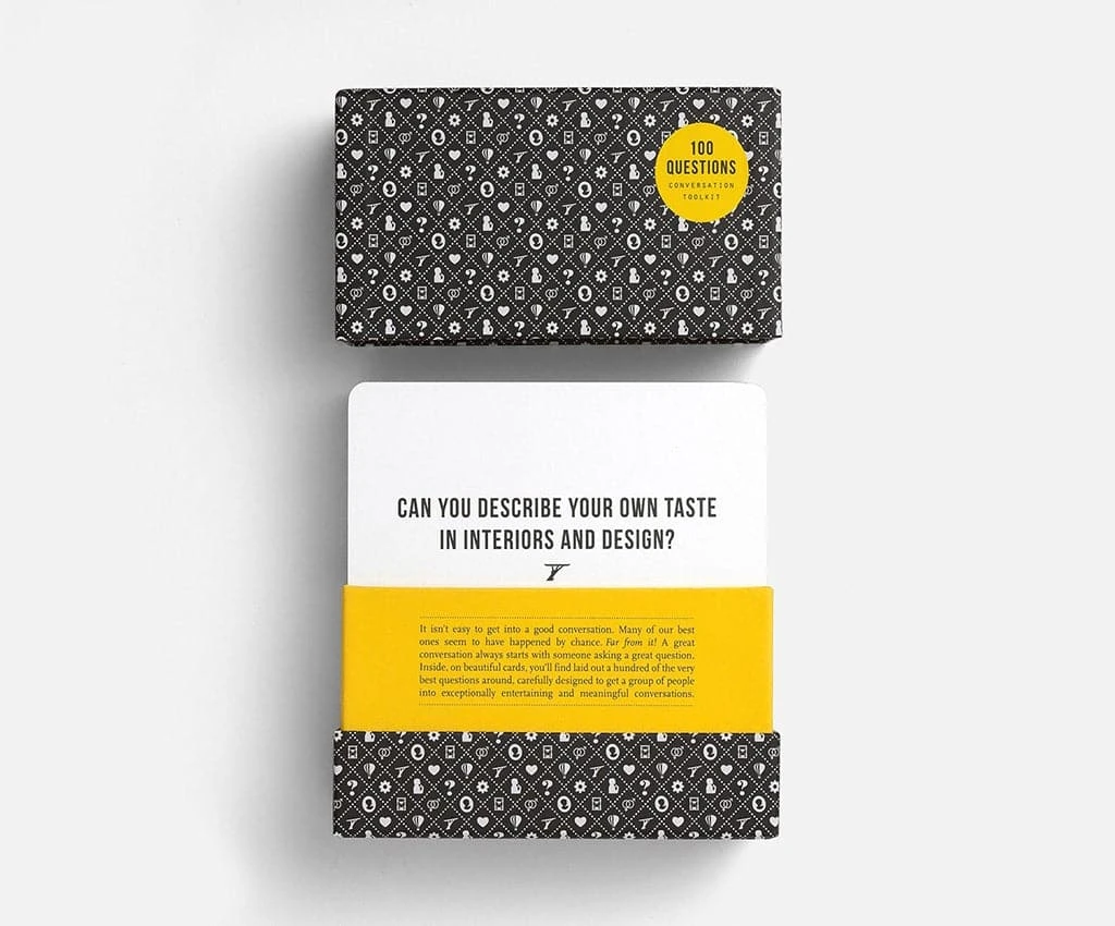 A toolkit for conversations. 100 cards across topics ranging across six broad topics. Leads to unexpected and often insightful conversations! Highly recommended. By The School of Life.
