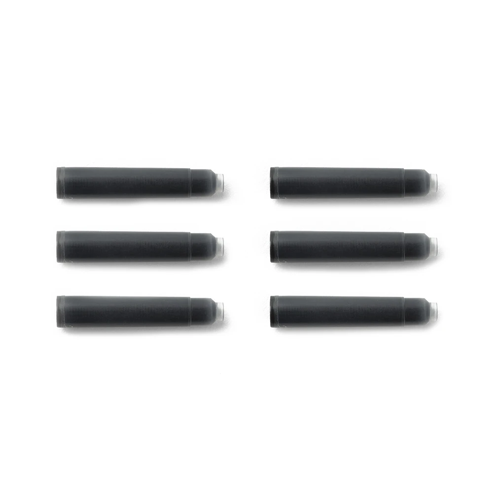 6 Ink cartridges for the BRASS Fountain Pen. Available in black and blue.