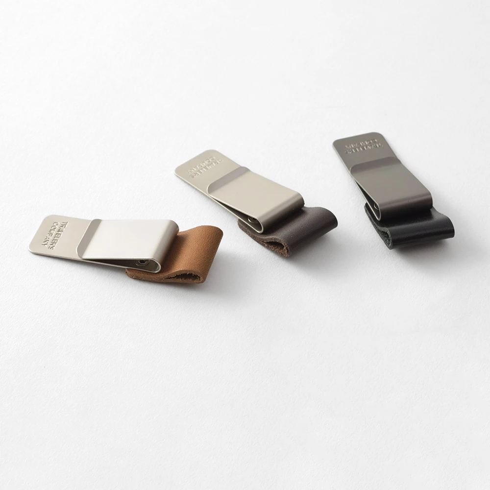 This pen holder fastens securely on to the leather cover of your Traveler’s Notebook, allowing you to carry a pen with your notebook. It features a strong gunmetal grey clip with a leather loop of the same type and quality used on the Traveler’s Notebook leather cover. The pen holder is available in two sizes: small and medium. The small pen holder (Refill 015) is perfect for holding all those pens which are either too thin or to thick to fit properly into the medium pen holder.