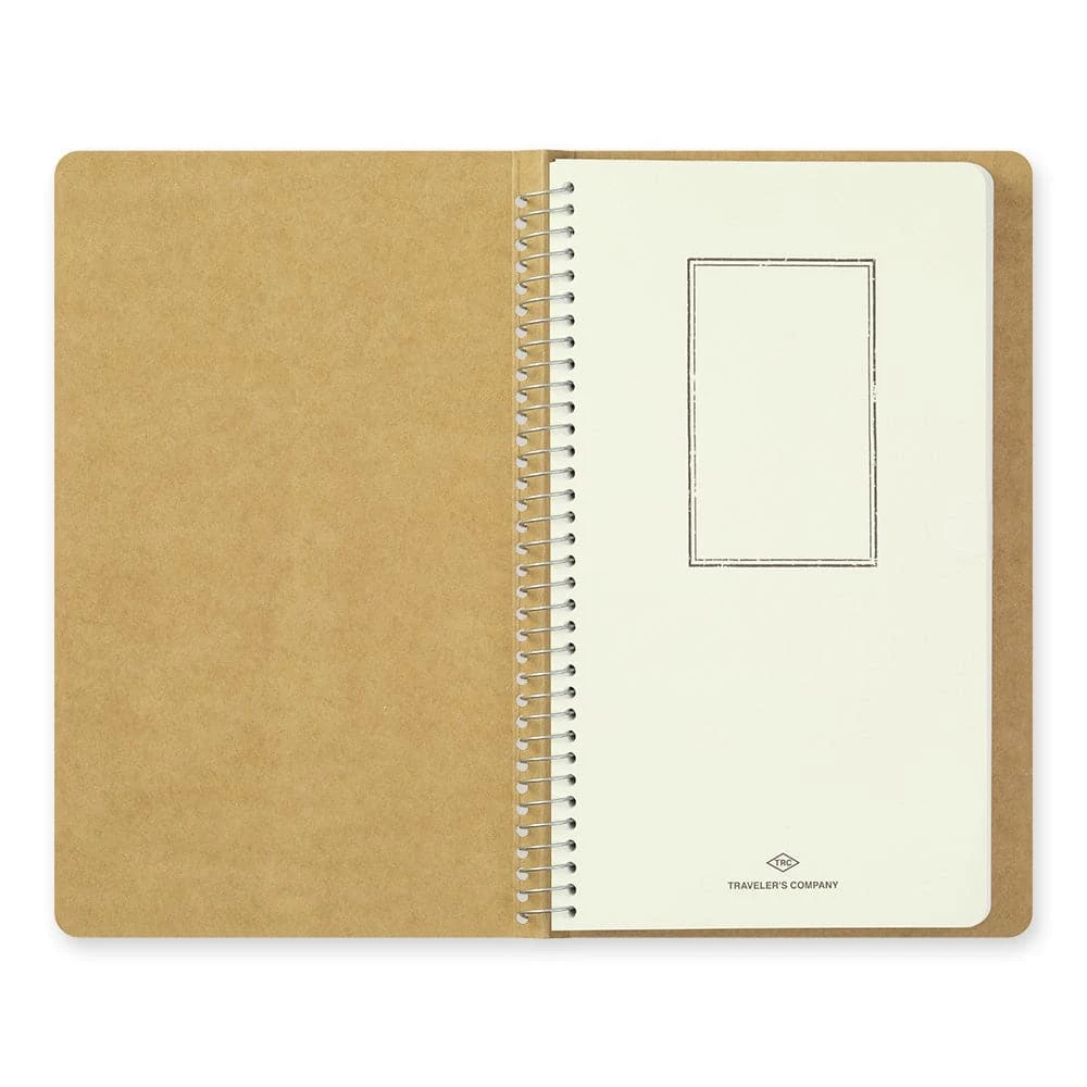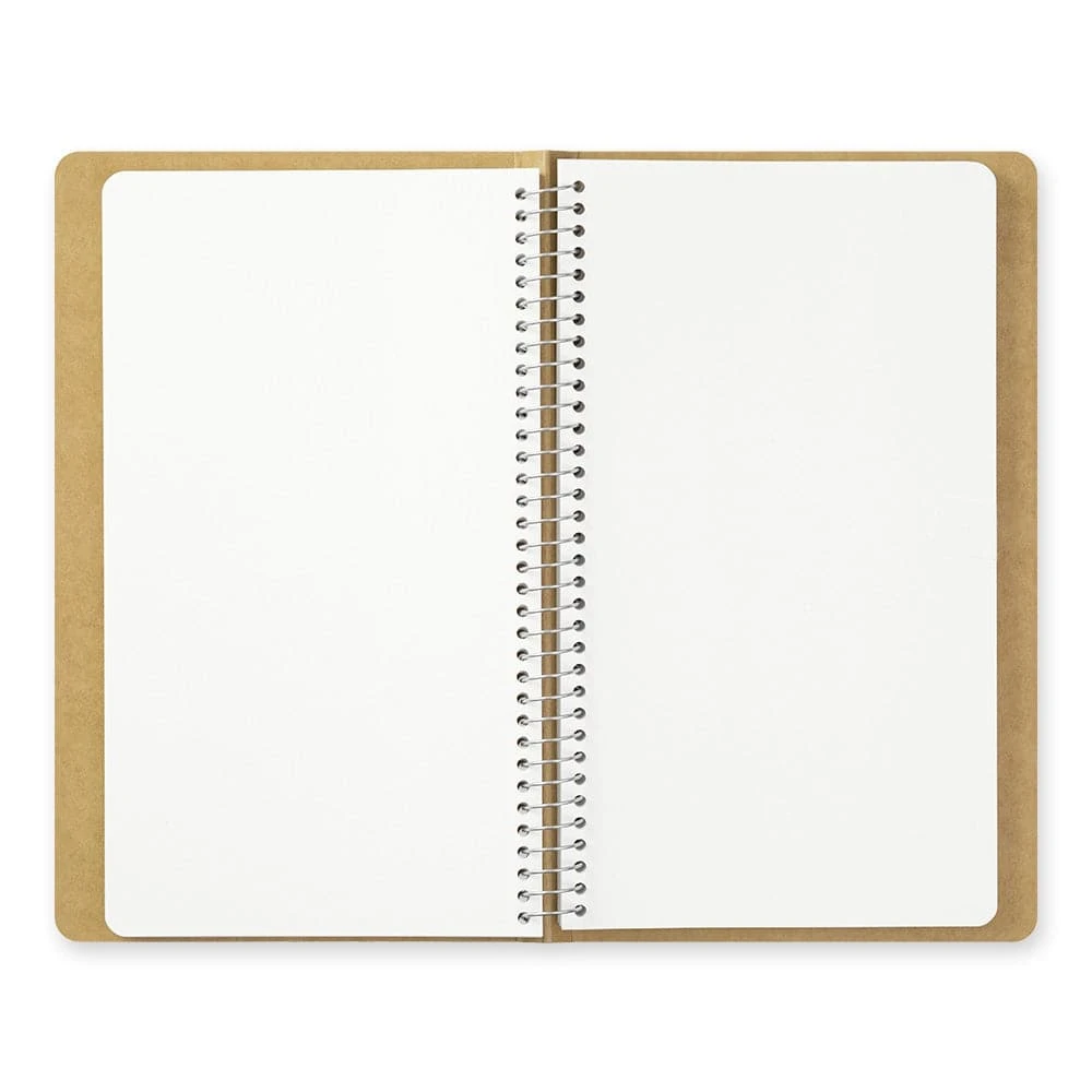 Traveler’s Company Spiral Ring Notebook in size A5 Slim features 200 pages (100 sheets) of plain white MD paper and silver coloured spiral rings.