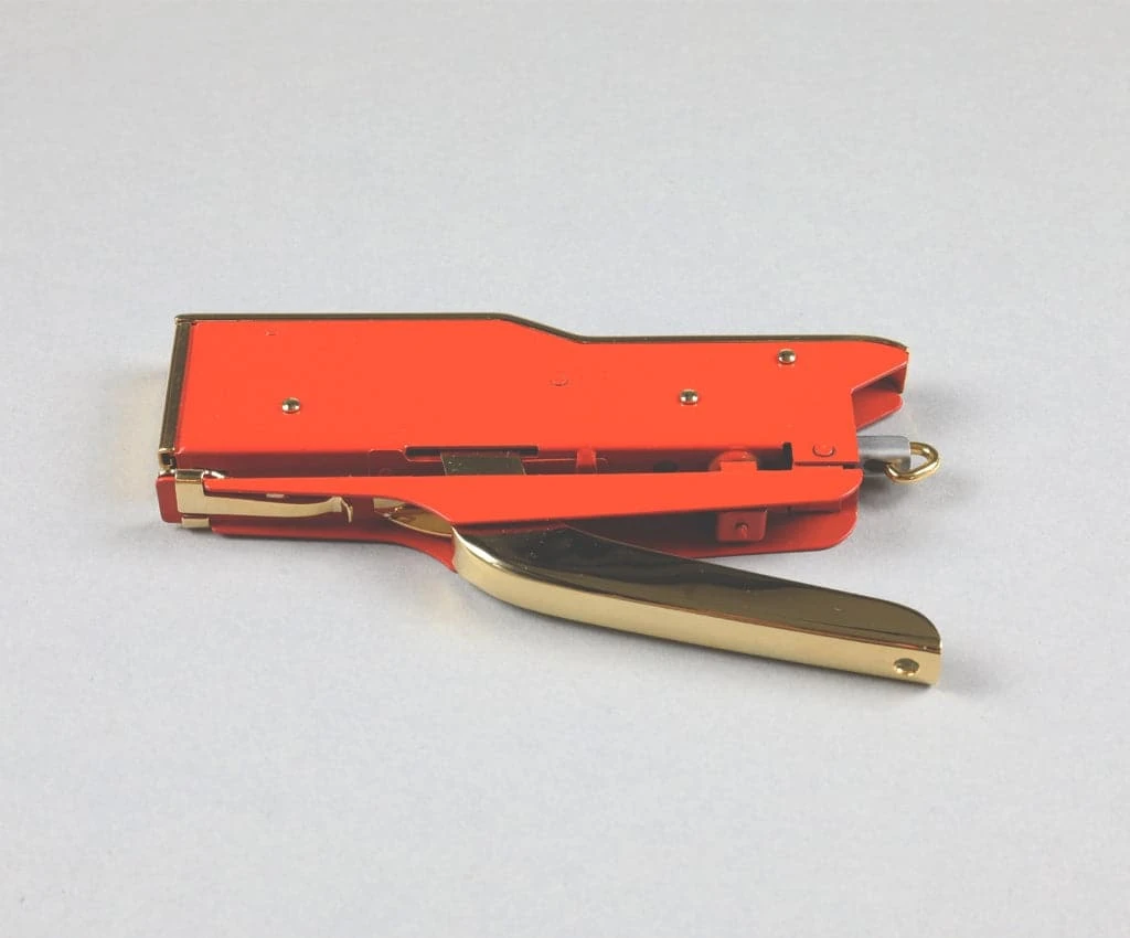 The Zenith Stapler 548 in gold is a stunning tool to always keep close at hand on your desk. Like all Zenith products, this stapler is high quality, durable and practical, while also featuring an extraordinary finish: the body is painted in a shiny orange-red colour, combined with other external components finely finished with gold-plated brass. Comes in a smart box, so it makes a perfect gift for anyone who enjoys keeping their papers organized, whether at home or in the office. Contains a box of Zenith staplers.